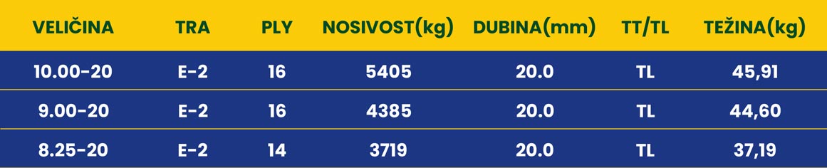 Dimenzije: 7.50-15; 8.25-15; 27X10-12; 250-15