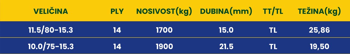 Dimenzije: 10.0/75–15.3; 11.5/80–15.3