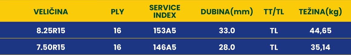 Dimenzije: 8.25R15; 7.50R15