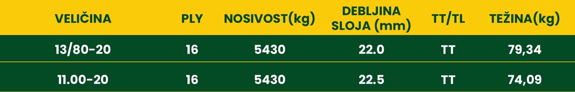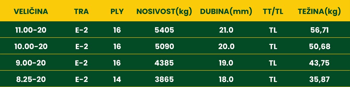 Dimenzije: 8.25–20; 9–20; 10–20; 11–20;